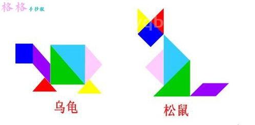 1、而这七块板可拼成许多图形(1600种以上),例如:三角形、平行四边形、不规则多边形,玩家也可以把它拼成各种人物、形象、动物、桥、房、塔等等,也可以是一些中、英文字母。
