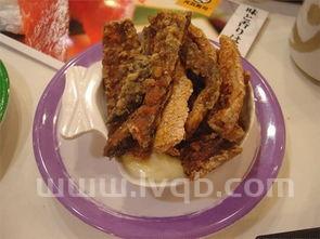 油炸三文鱼皮 三文鱼皮洗净去鳞,切成适口的小块。将三文鱼皮用料酒、鸡精、盐、黑胡椒粉腌制20分钟。将准备好的三文鱼皮裹上干淀粉,然后再裹上蛋液。