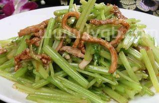 3、芹菜可以与虾仁、鲜百合同炒,做成清淡味美的西芹百合炒虾仁,也可以与胡萝卜、木耳、腐竹一起炒,做成开胃下饭的素菜。芹菜还可以搭配香菇、豆腐干、土豆片等食材,或是与猪肉、牛肉、鸡肉等肉类一同烹炒。