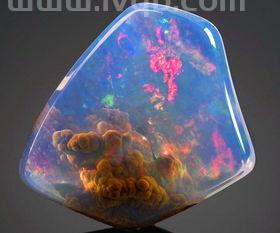 3、蛋白石在矿物学中属蛋白石类,是具有变彩效应的宝石,是一种含水的非晶质的二氧化硅。