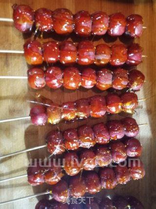 2、传统的做法是把做好的糖葫芦放在侵透水的木板上冷却,不过这样会在底部形成一个扁平的平面,如果不喜欢,可以把冰糖葫芦一头悬空冷却,这样就不会出现一块平的现象,不过有可能长出一条“小辫子”。