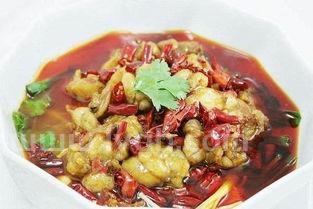 2、牛蛙宰杀去皮斩2厘米见方的块,以盐、味精、蛋清腌渍10分钟。炒锅置旺火上,入油烧至八成热,下入牛蛙块小火浸炸4分钟至外焦内嫩,起锅滤油。
