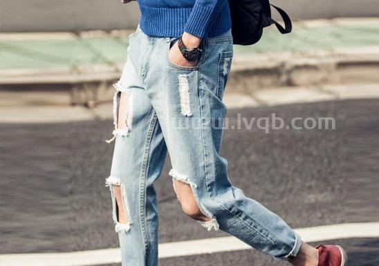 但是,如果单纯只有一个小破洞的话,可以做一些修饰,比如再弄几个破洞,这样更具有一些美感。做一些破洞,撕出一些白流苏边,就可以打造出一种破洞风格,这是特别不错的。