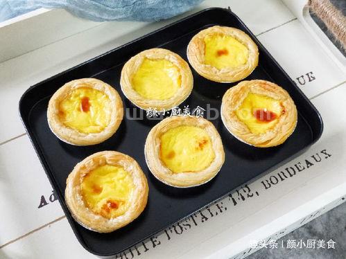 4、蛋挞皮一般都是冷冻的,不需要解冻哈。第五步:把蛋挞液倒入蛋挞皮中,这些蛋挞液可以做10~11个蛋挞,我做了九个,蛋挞液就放得很满。