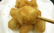 3、汤圆需要先解冻,然后在汤圆上戳几个小洞,这样可以防止炸的过程中爆炸。用冷油炸,炸时候要用很小的火,汤圆靠油养熟,捞起来。
