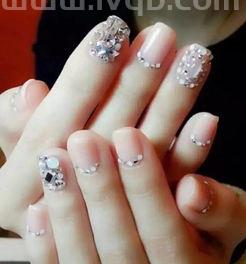 3、大家也都会选择做浅色系的美甲,然后选择贴一些钻石。这样也是有着非常好的效果,还会给大家不一样的感觉。因为适当的加一些珍珠和钻石也是能够提升美甲的效果,还可以给人不一样的感觉。
