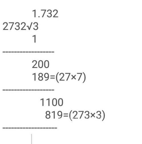 2、根号3≈732。根号3是一个无理数,它的小数部分是无限不循环的,无论算多久也算不出小数部分的规律。但是根号3不一定只能用计算器算出结果,它的大致结果也能通过手算算出。