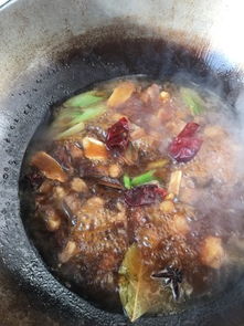 4、步骤:羊小腿3根,让商家用电锯将其分成几段,泡凉水15分钟,将其中的部分血水泡出。将羊腿放入适量凉水锅中,再倒入适量的红烧酱油,大火煮开。