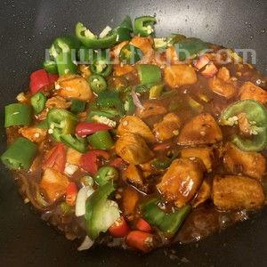 6、主料:鸡块800克、土豆2个、洋葱半个。辅料:油适量、大葱1段、老姜1块、大料2瓣、生抽3勺、老抽1勺、冰糖适量、麻椒1小勺、盐适量、料酒3勺、蒜苗2根。做法如下:先把土豆去皮清洗干净,切成滚刀块。