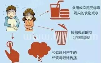 4、食源性传染:诺如病毒可以受污染的食物为病毒载体进行传播,导致人类感染。所以我们应该食用新鲜、洁净的食物,如果食物放久或存放不当,都应坚决避免食用。