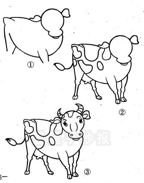 先把牛的头部画出来,再画上牛的眼睛和鼻子,还有一对耳朵和一对犄角,接着把牛的身体画出来,然后还有一条尾巴,最后再给牛的身上画几个小图案,一头可爱的小奶牛就画好了。牛的特点是体质强壮。