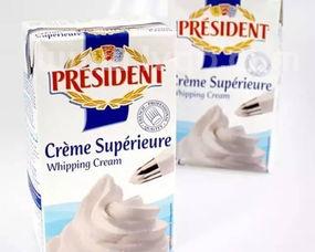 5、总统淡奶油它是由未均质化之前的生牛乳顶层的牛奶脂肪含量较高的一层制得的乳制品,是从牛奶、羊奶中提取的黄色或白色脂肪性半固体食品,脂肪含量是有115%,爱吃甜品的人要注意每天的摄入量。