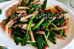2、韭菜炒海肠是一道美食,需要一些技巧才能做出好吃的味道。首先,选择新鲜的韭菜和海肠非常重要。新鲜的韭菜叶子翠绿,嫩而有弹性,新鲜的海肠表面光滑,没有气味。其次,准备食材。将韭菜洗净,切成3厘米长的段,将海肠切成薄片。