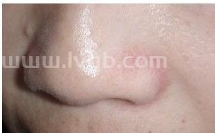 2、鼻子发炎了,鼻子周围一般油性分泌物多,容易堵住毛孔,引起的毛囊炎!平时用的洗面奶洗洗,夏天容易出油。