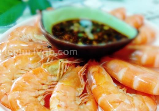 吃虾:只放少许醋,将虾剥开,将虾肉在醋里沾一下,就可食用。