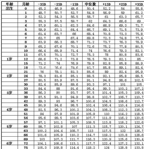 孩子身高标准如下:出生时孩子的平均身高在50厘米左右,1岁平均身高在75厘米左右,2岁平均身高在85厘米左右,2-12岁的平均身高(厘米)可以用年龄×6+77厘米来计算。