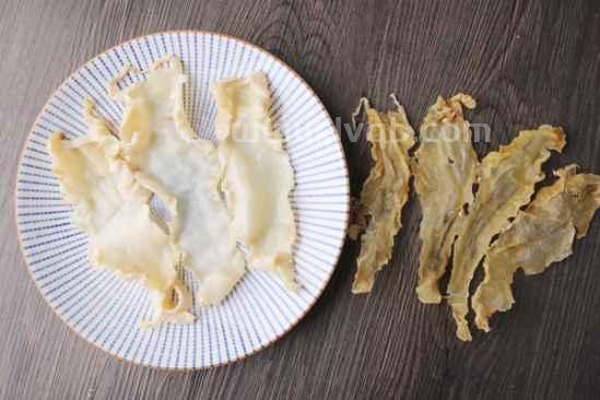 1、准备材料:首先把干鱼胶和食材准备好,另外还有纯净水,大小时候的盆,把需要的东西准备好了之后就可以进行泡发。